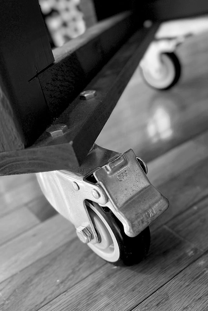 Since my work involves Virtual Reality, floor space is a premium. I designed the frame on heavy-duty, locking casters that allow me to roll the entire workstation around the studio with ease. This modularity means I can expand the room for VR or painting projects, then roll the desk back into 'focus mode' when it's time to jam on a Blender project.